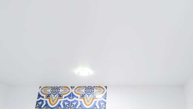 Бесшовный матовый натяжной потолок в ванную 4,4 м2