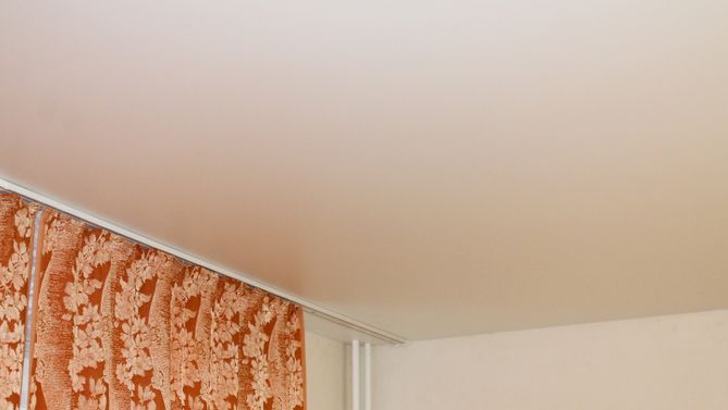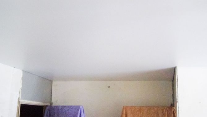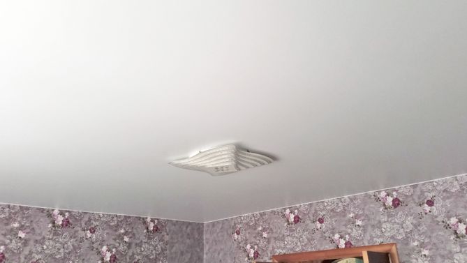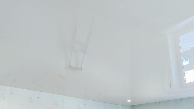 Глянцевый натяжной потолок в деревянном доме 22,3 м2