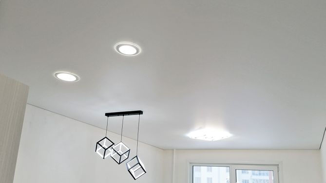 Монтаж потолка для зала 16 м2, полотно VISP M9001 (3.80)