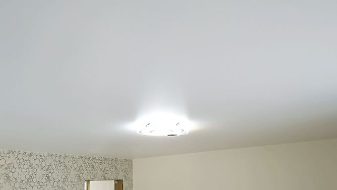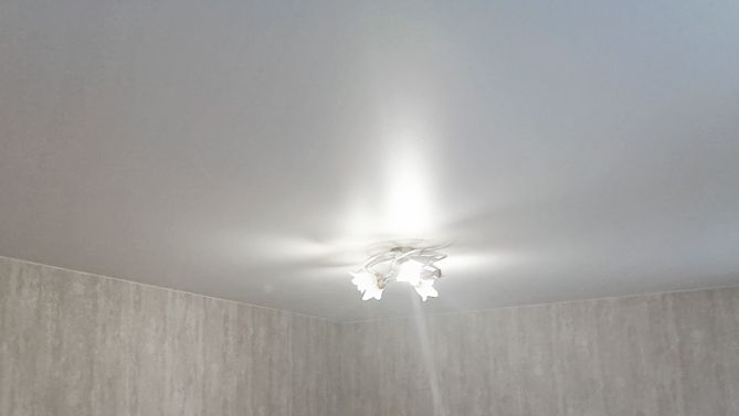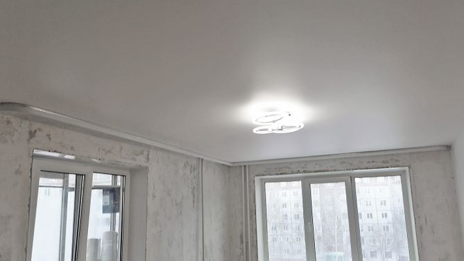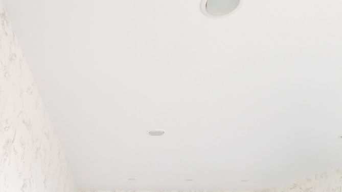 Монтаж потолка в гостиной 16 м2, полотно VISP M9001 (3.80)