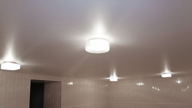 Бесшовный матовый натяжной потолок для зала 22,4 м2