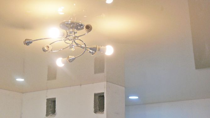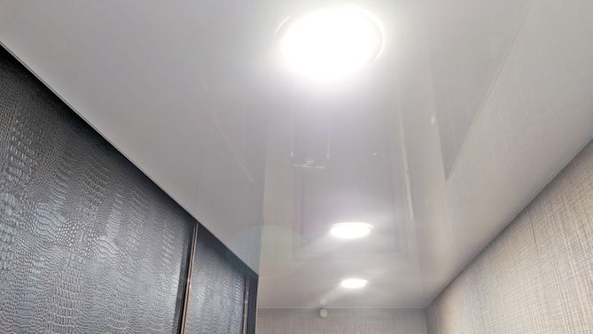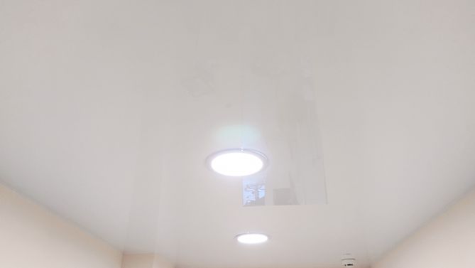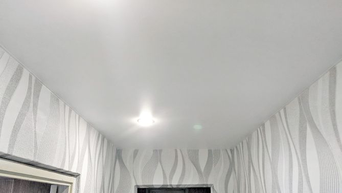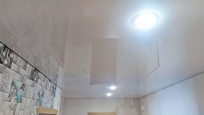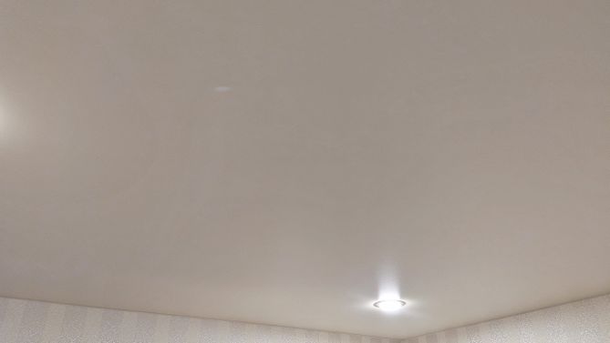 Бесшовный глянцевый натяжной потолок в квартиру 25,3 м2
