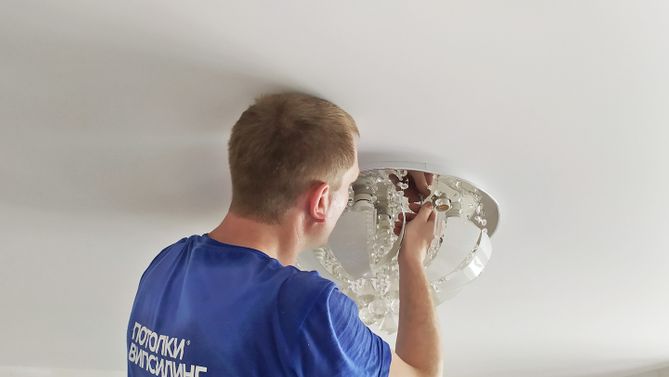 Монтаж потолка для зала 18 м2, полотно VISP M9001 (3.25)