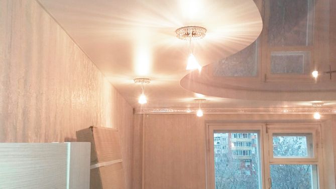 Здравствуйте, я выбрала Випсилинг, потому что первый потолок был сделан с небольшим изъяном в другой компании, поэтому, в городе я увидела щит Випсилинг и решила обратиться к ним. Перед этим я зашла в интернет, посмотрела отзывы, посмотрела портфолио, и решила заказать потолки в свою квартиру. Потолки были сделаны качественно, без изъянов. Ребята сделали проводку грамотно и вот, — вы видите результат.