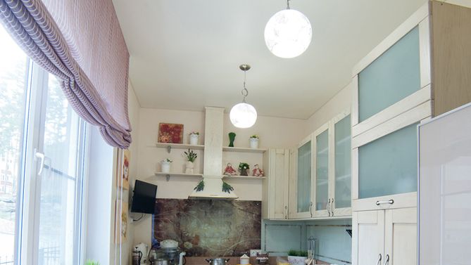 Сатиновый потолок на кухню 9,2 м2