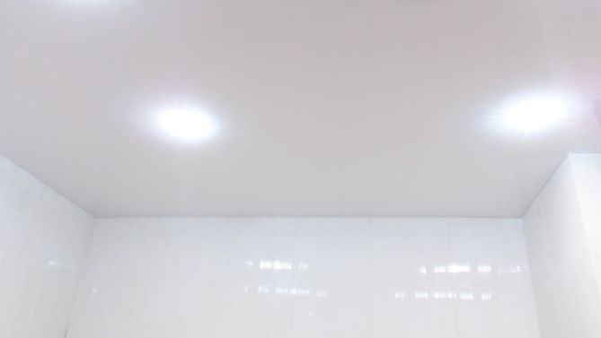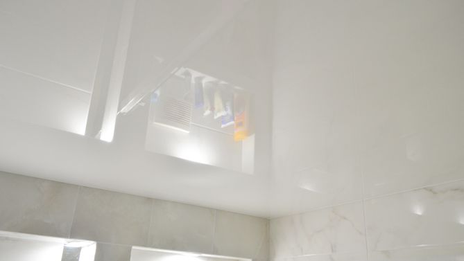 Бесшовный глянцевый натяжной потолок в ванную комнату 3,8 м2