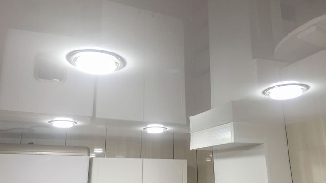 Бесшовный глянцевый натяжной потолок в ванную комнату 4 м2