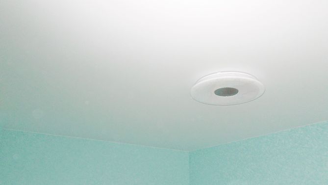 Бесшовный матовый натяжной потолок в деревянном доме 29,1 м2
