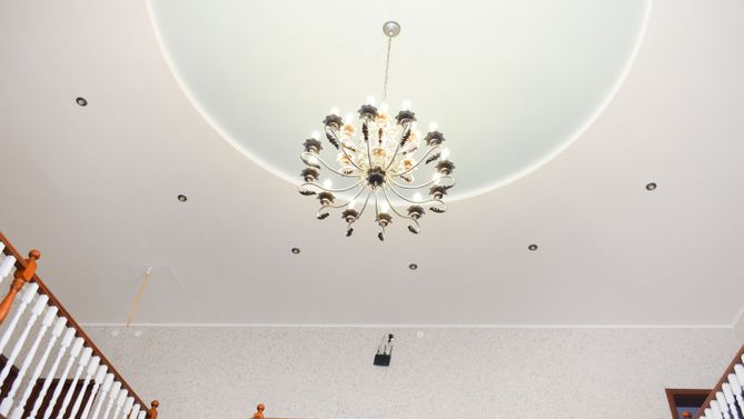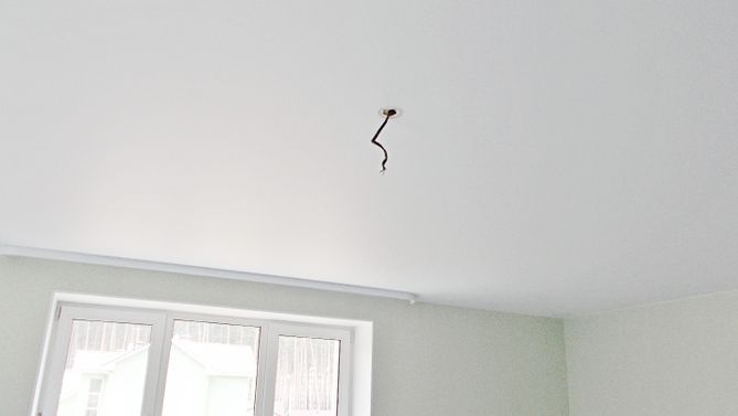 Монтаж потолка в деревянном доме 64 м2, полотно VISP M9001 (4.90)