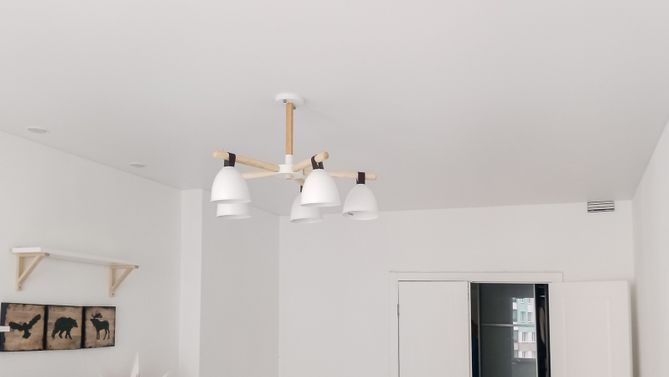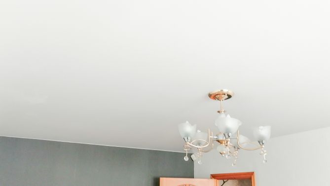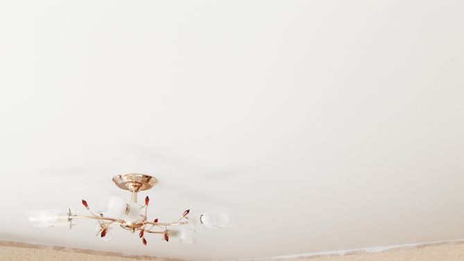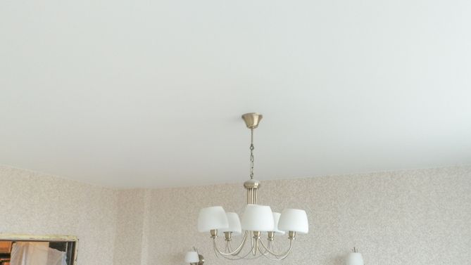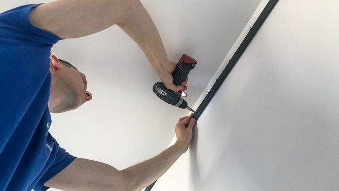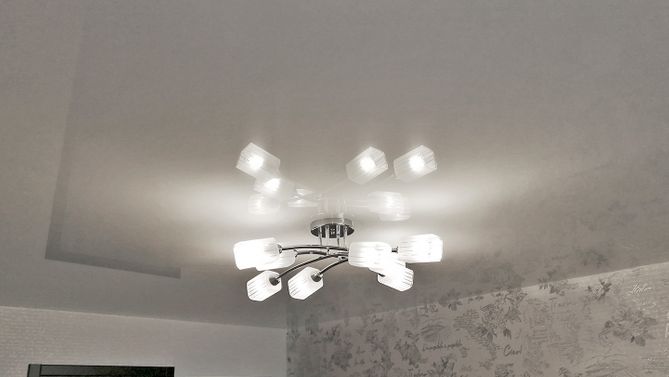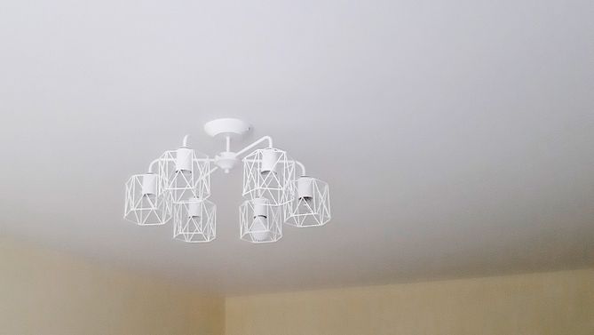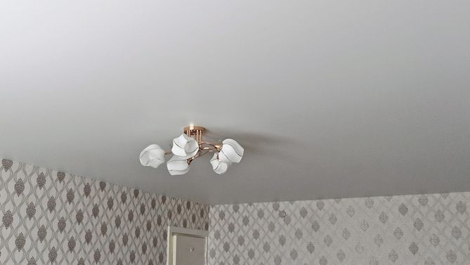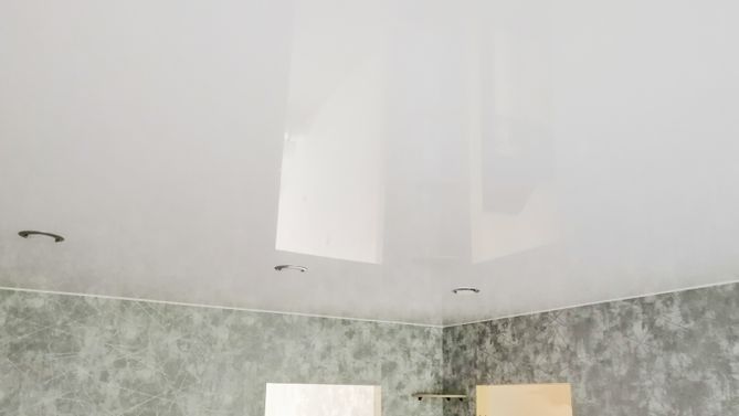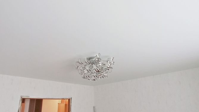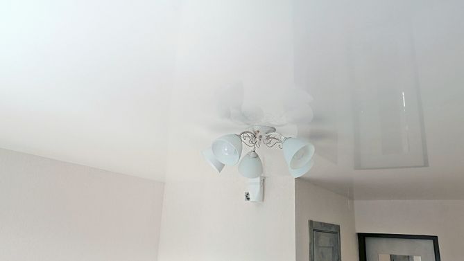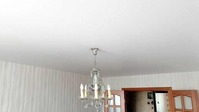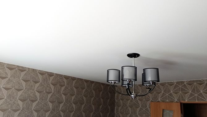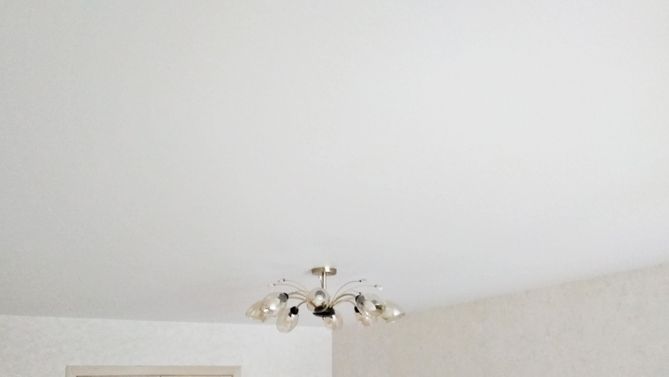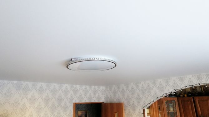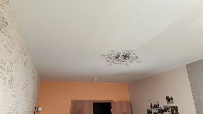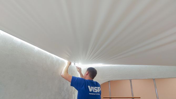 Монтаж потолка в гостиной 15 м2, полотно VISP M9001 (3.80)