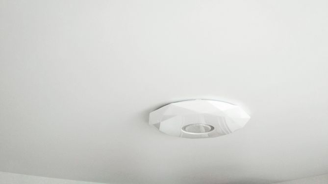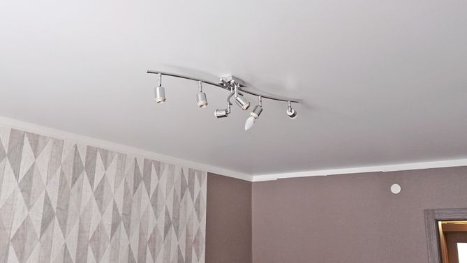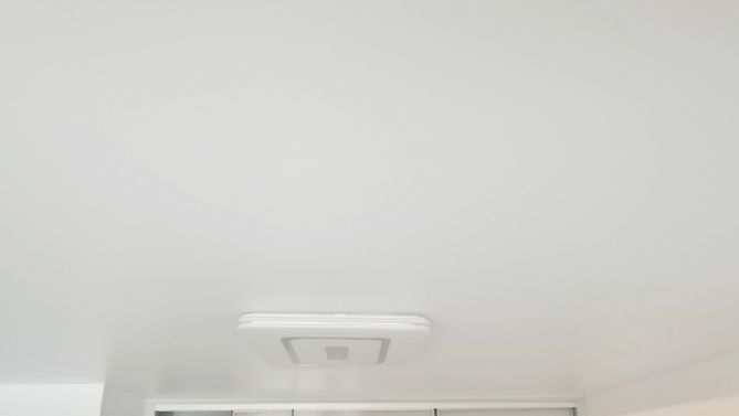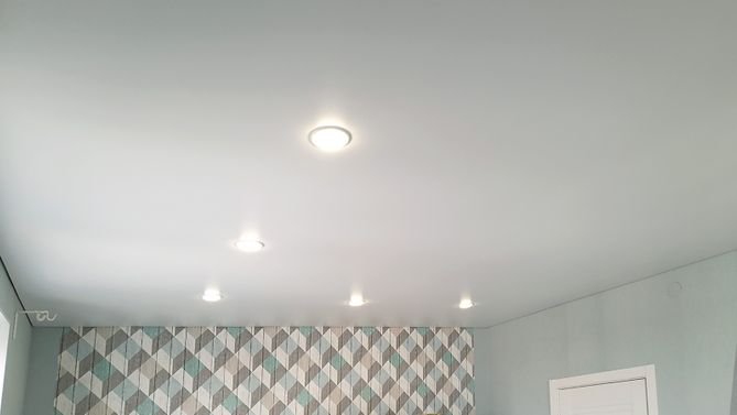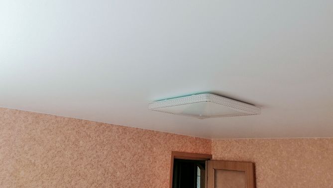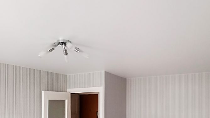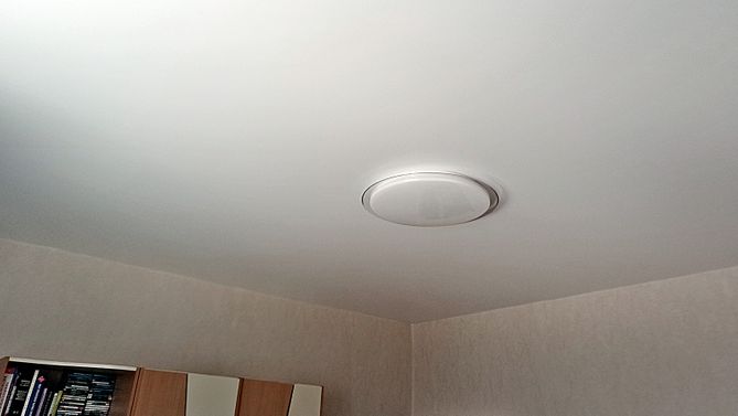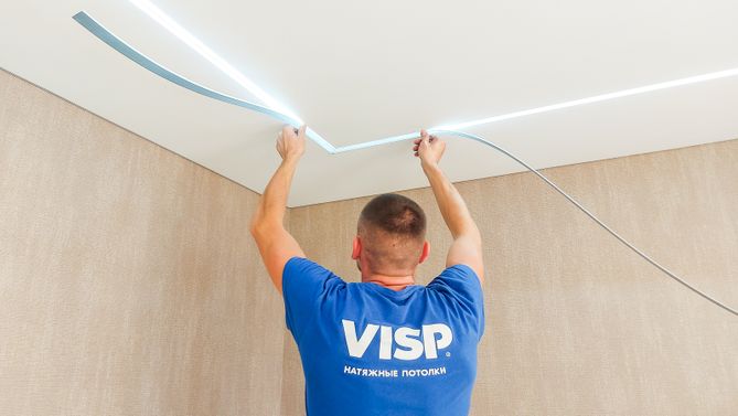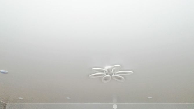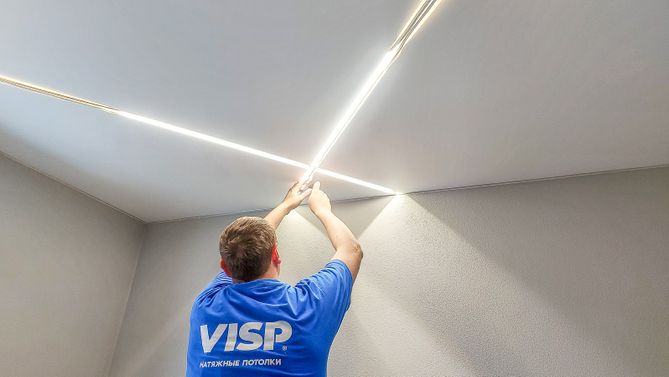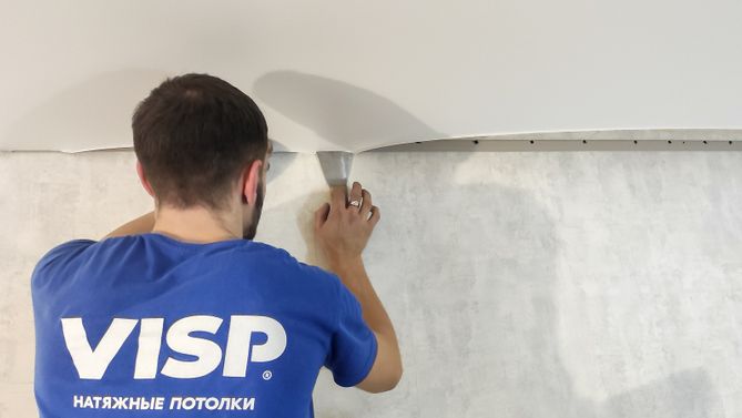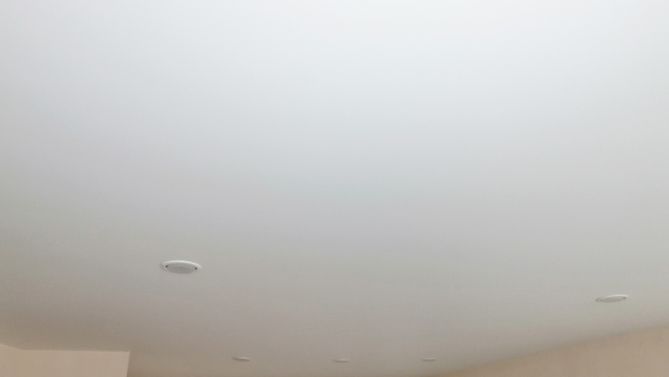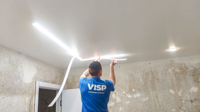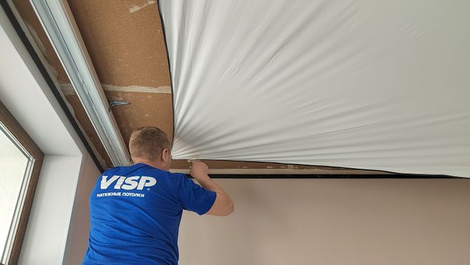 Монтаж потолка в гостиной 14 м2, полотно VISP M9001 (3.80)