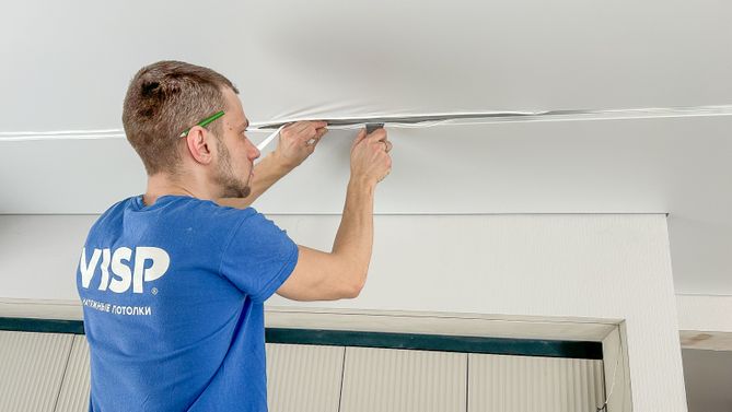 Монтаж потолка в гостиной 15 м2, полотно VISP M9001 (4.00)