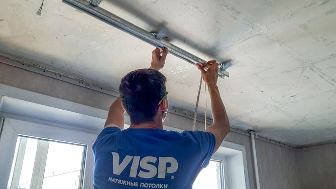 Монтаж потолка в гостиной 16 м2, полотно VISP L9001 (4.00)