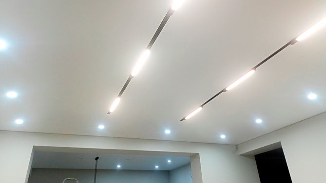 Монтаж потолка в гостиной 17 м2, полотно VISP M9001 (4.35)