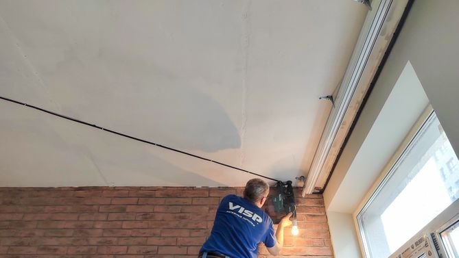 Монтаж потолка в гостиной 18 м2, полотно VISP S9020 (3.80)