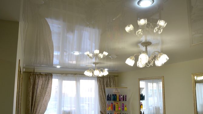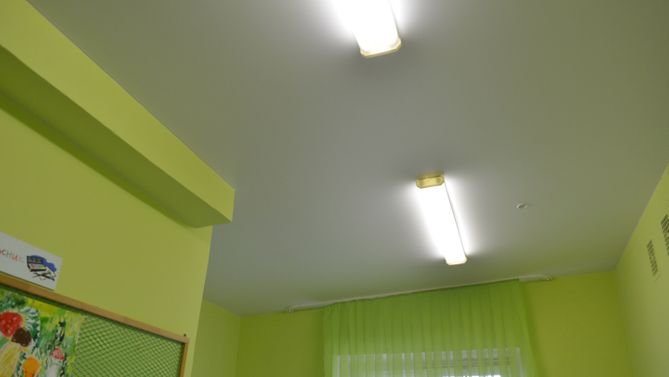 Бесшовный сатиновый натяжной потолок в офис 13 м2
