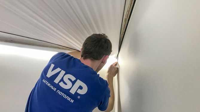 Монтаж потолка в квартире 35 м2, полотно VISP M9001 (5.45)