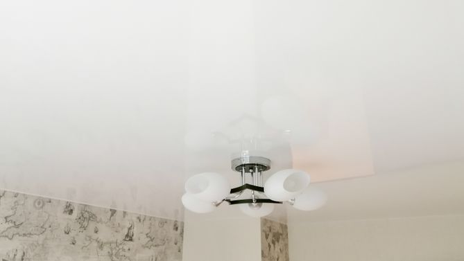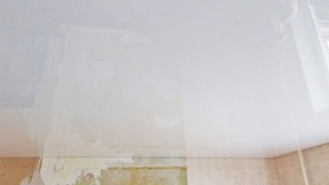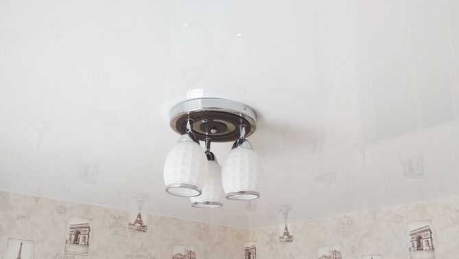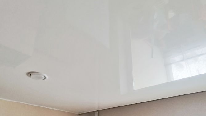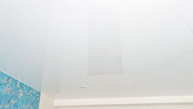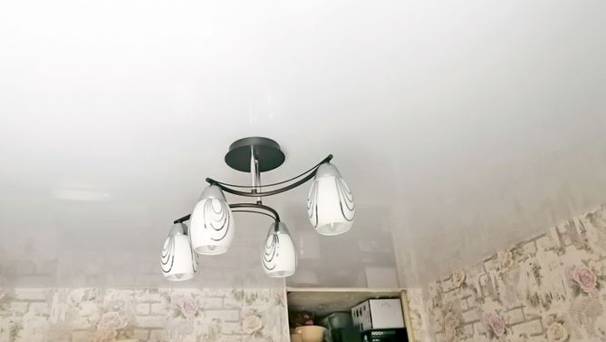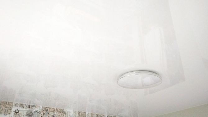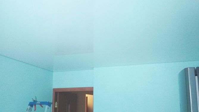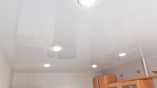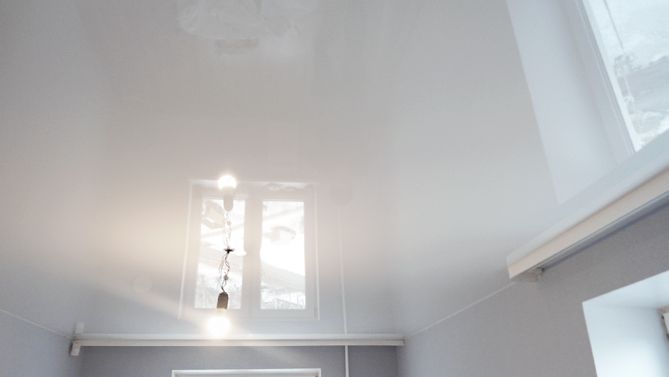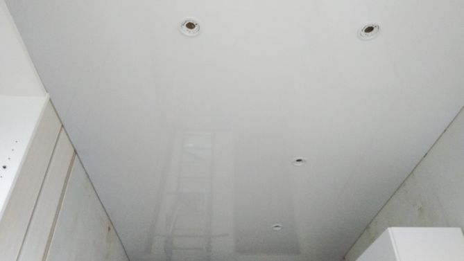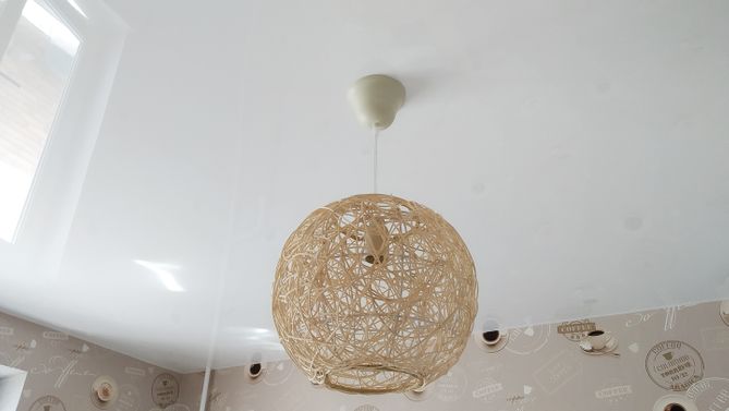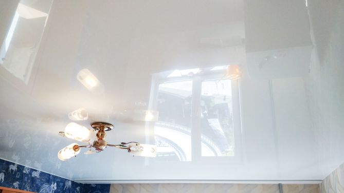 Бесшовный глянцевый натяжной потолок на кухню 8,7 м2