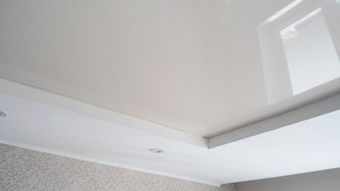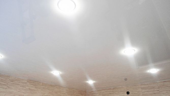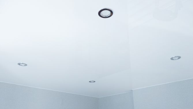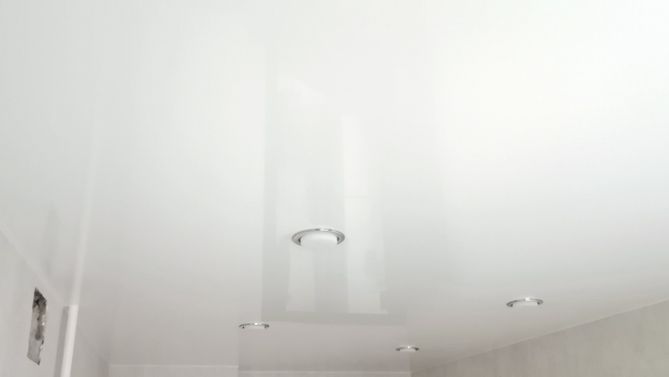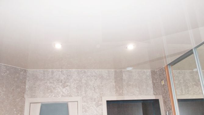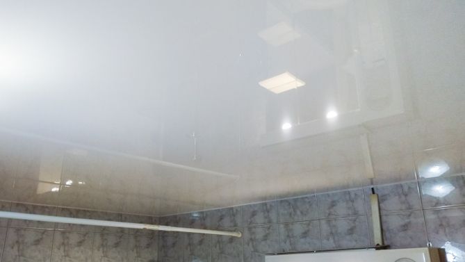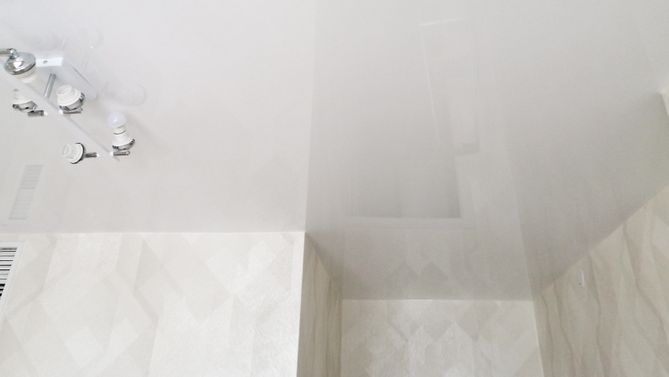 Бесшовный глянцевый натяжной потолок в ванную комнату 4 м2