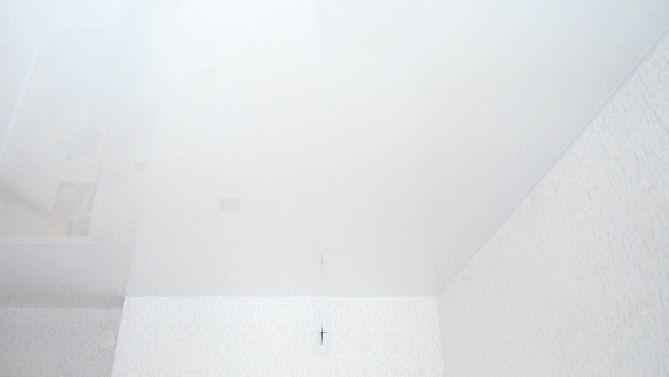 Бесшовный глянцевый натяжной потолок в спальню 9,9 м2