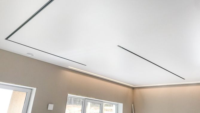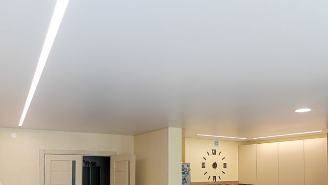 Монтаж потолка в гостиной 45 м2, полотно VISP S9020 (5.45)