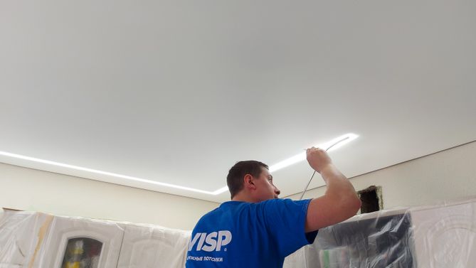 Монтаж потолка на кухне 6 м2, полотно VISP S9020 (2.60)