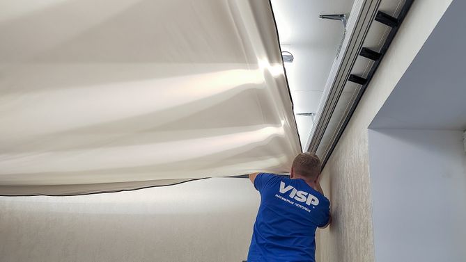 Монтаж потолка в квартире 34 м2, полотно VISP S9020 (5.45)