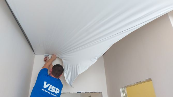 Монтаж потолка в спальне 10 м2, полотно VISP S9020 (2.15)