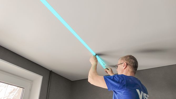 Монтаж потолка в спальне 13 м2, полотно VISP S9020 (3.25)