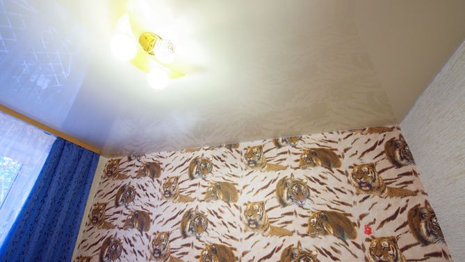 Бесшовный глянцевый натяжной потолок в детскую 11 м2