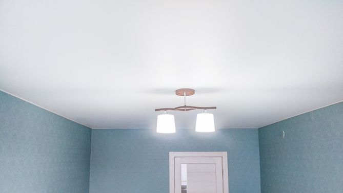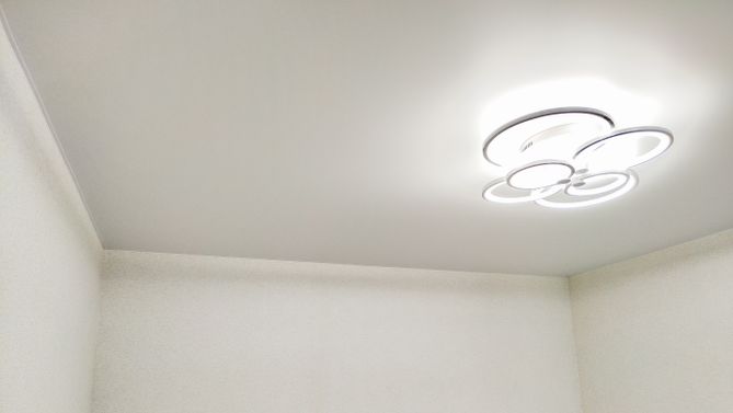 Бесшовный матовый натяжной потолок в спальню 11,5 м2