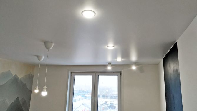 Глянцевый потолок в детскую 16,4 м2