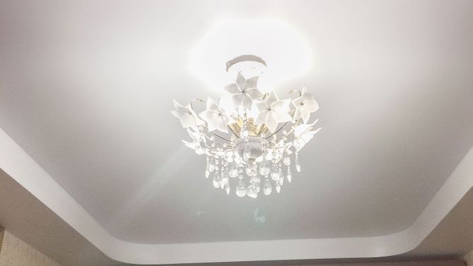 Здравствуйте, я выбрала Випсилинг, потому что первый потолок был сделан с небольшим изъяном в другой компании, поэтому, в городе я увидела щит Випсилинг и решила обратиться к ним. Перед этим я зашла в интернет, посмотрела отзывы, посмотрела портфолио, и решила заказать потолки в свою квартиру. Потолки были сделаны качественно, без изъянов. Ребята сделали проводку грамотно и вот, — вы видите результат.