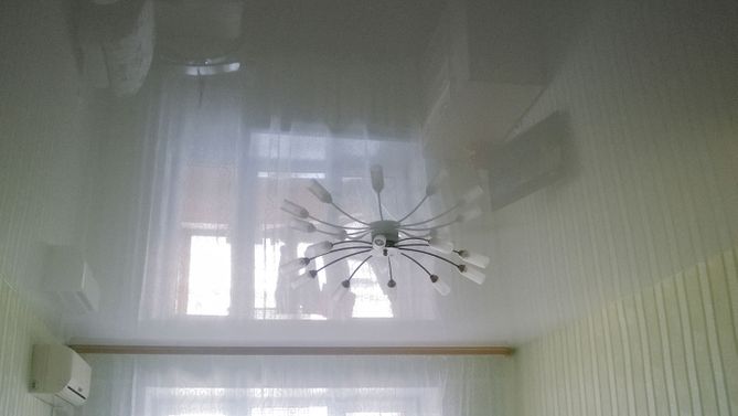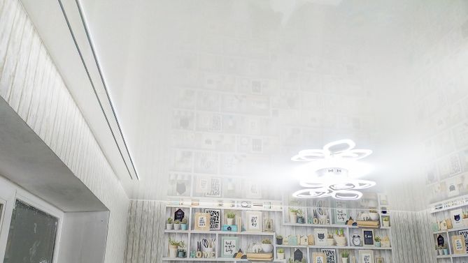 Бесшовный глянцевый натяжной потолок в спальню 15,9 м2