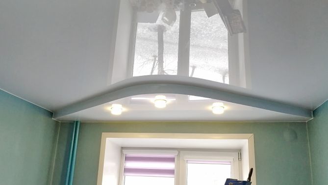Двухуровневый глянцевый натяжной потолок для зала 21,7 м2