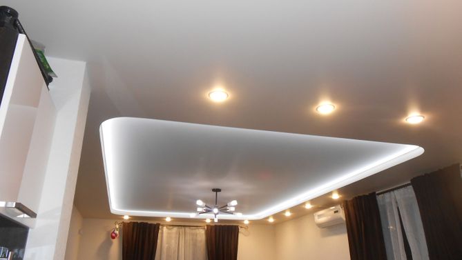 Полупрозрачный натяжной потолок с подсветкой 33,4 м2