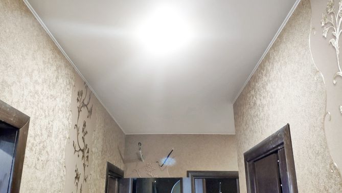 Бесшовный матовый натяжной потолок в коридор 9,9 м2