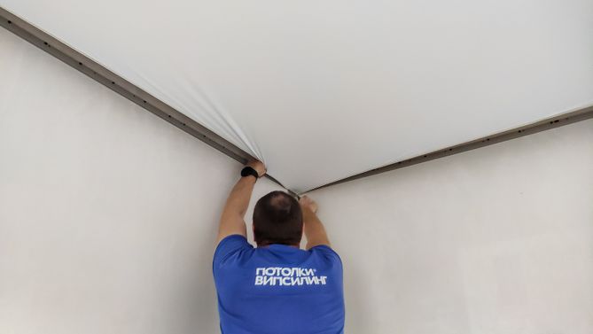 Монтаж потолка в спальне 14 м2, полотно VISP M9001 (3.80)