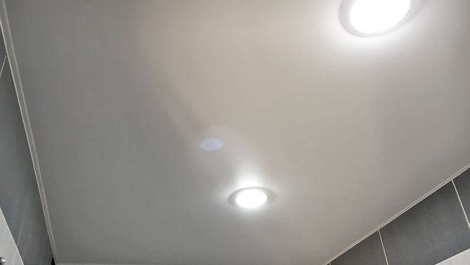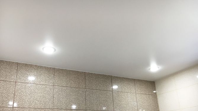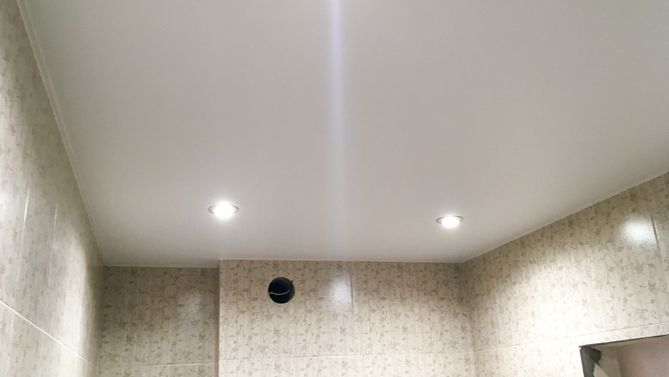 Бесшовный глянцевый натяжной потолок в ванную комнату 4 м2