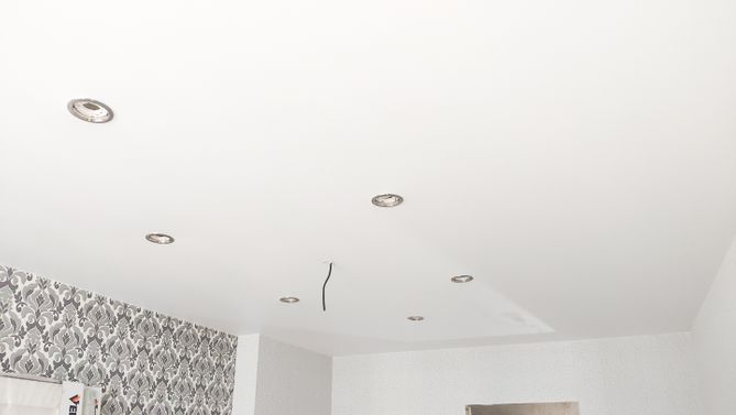 Ремонт потолка в гостиной 16 м2, полотно VISP S9020 (3.50)