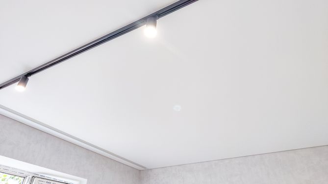В помещениях большой площади, чтобы полотно не провисало, рекомендуем использовать теневой разделительный профиль.