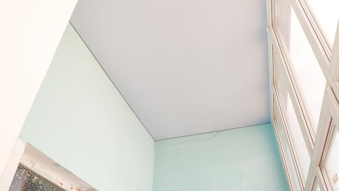 Ремонт потолка в гостиной 16 м2, полотно VISP S9020 (3.50)