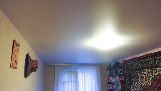 Бесшовный матовый натяжной потолок в спальню 9,9 м2