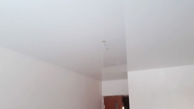 Глянцевый натяжной потолок в деревянном доме 32,8 м2