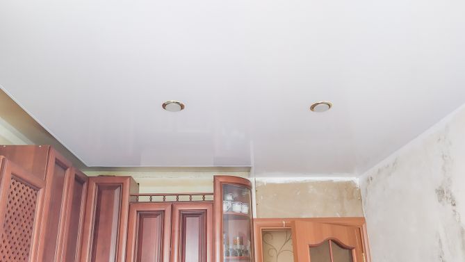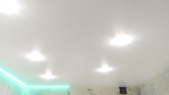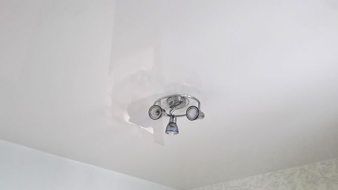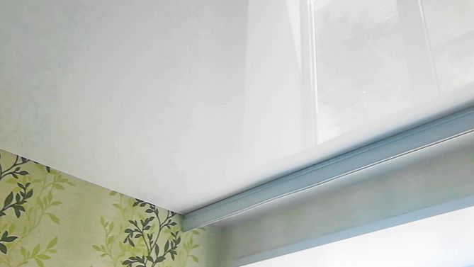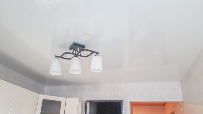 Бесшовный глянцевый натяжной потолок на кухню 6,2 м2