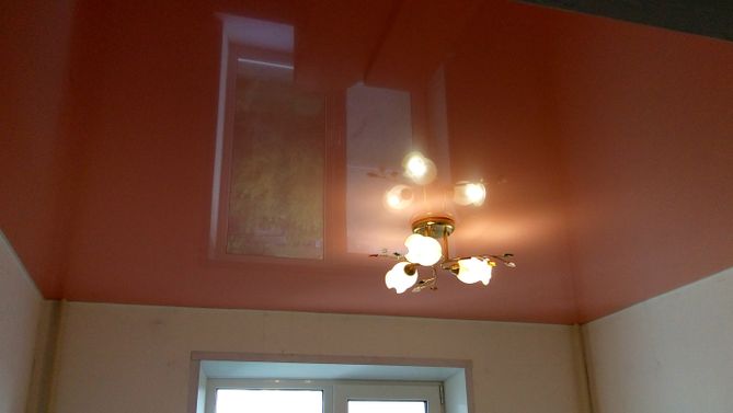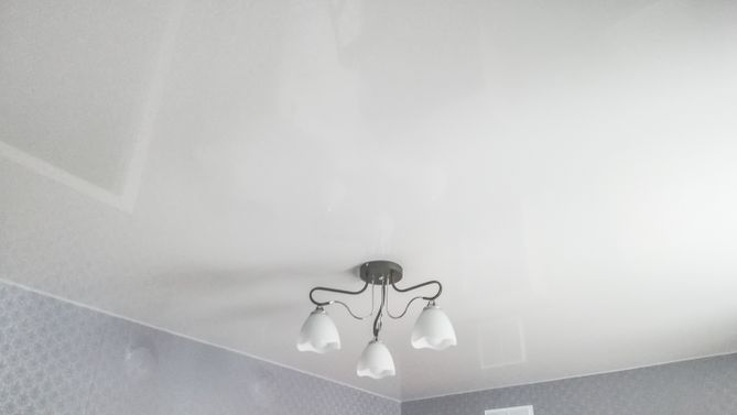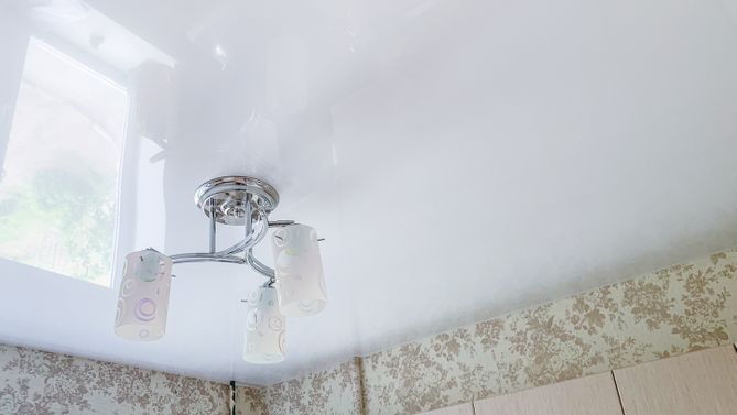 Бесшовный глянцевый натяжной потолок на кухню 6,1 м2