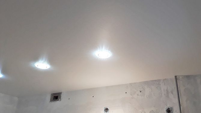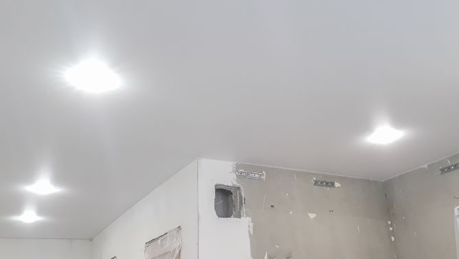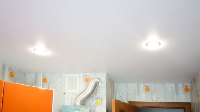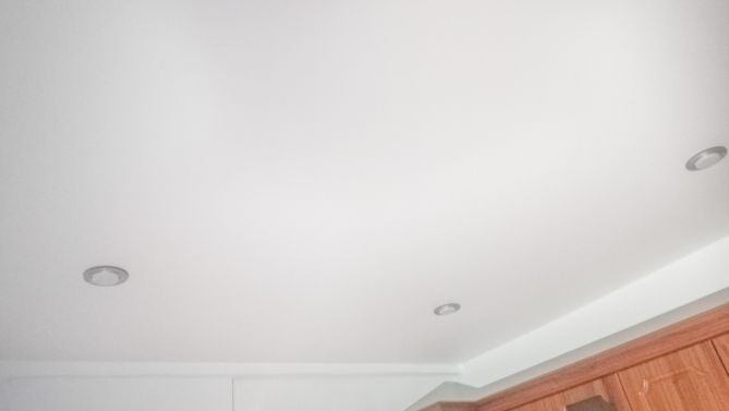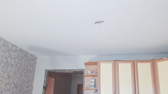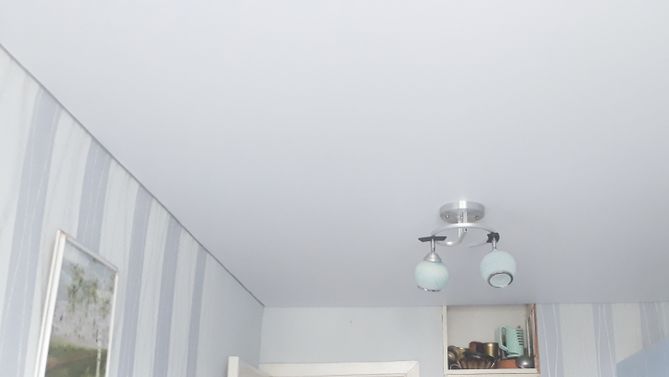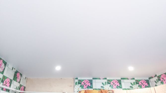 Бесшовный сатиновый натяжной потолок на кухню 6,9 м2