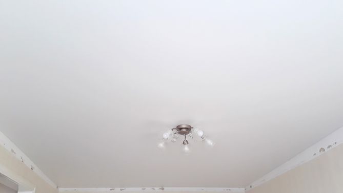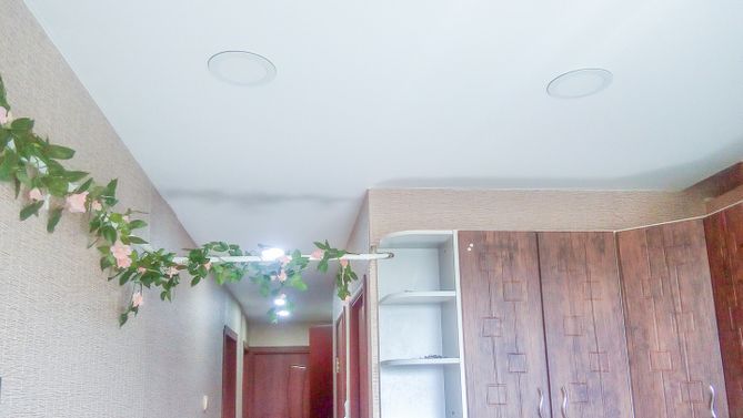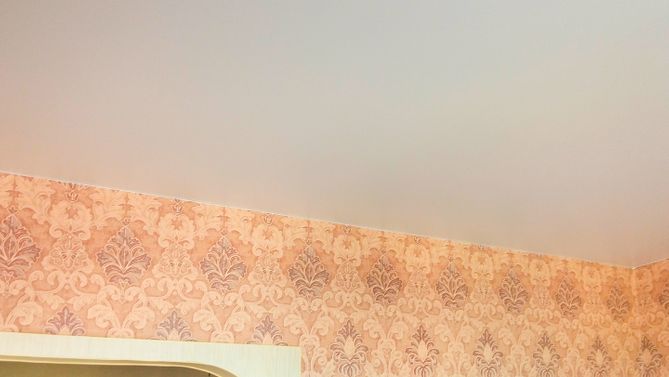 Бесшовный сатиновый натяжной потолок в деревянном доме 8,8 м2