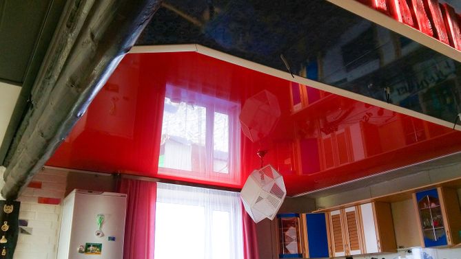 Комбинированный натяжной потолок на кухню 6,7 м2