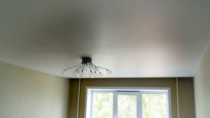 Бесшовный матовый натяжной потолок для зала 17,1 м2